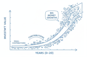 Early on, most of the growth comes from your own contributions, not from returns.